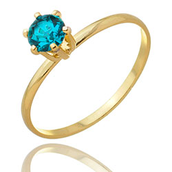 Anel solitário folheado a ouro com strass de 6 mm na cor aquamarine