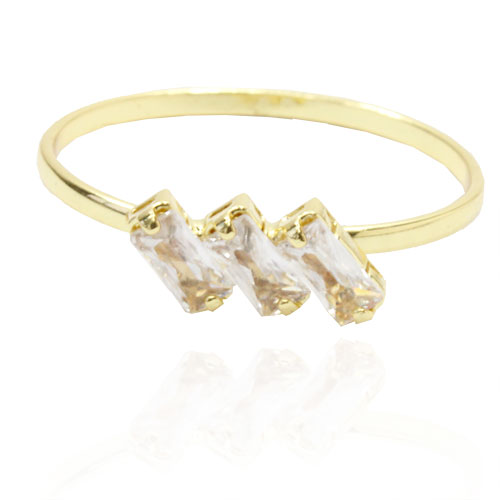 DESCRIÇÃO: Anel folheado a ouro com 3 pedras carrê em zicônia