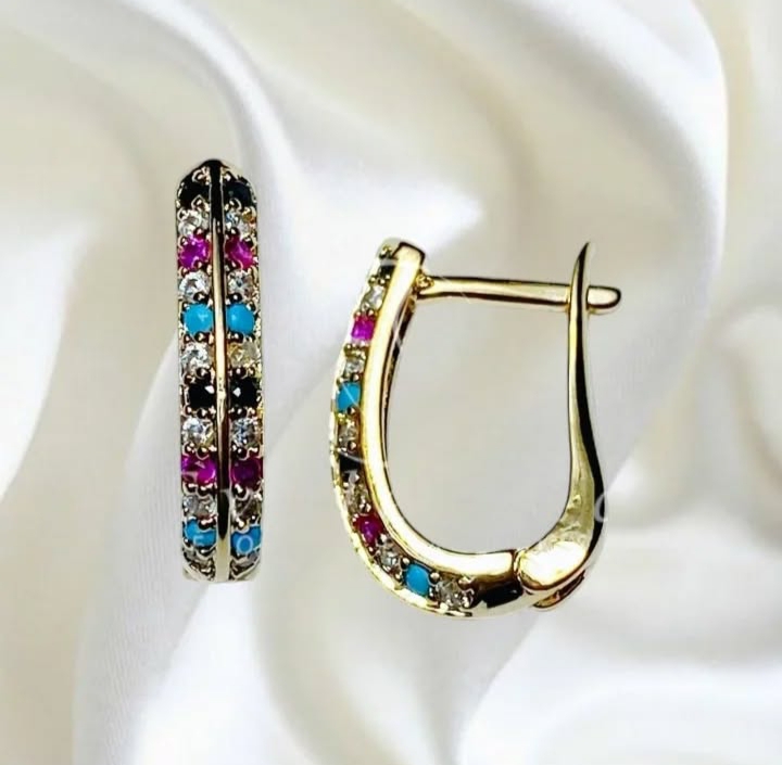 Brinco Argola Oval Com Mini Zirconias Coloridas