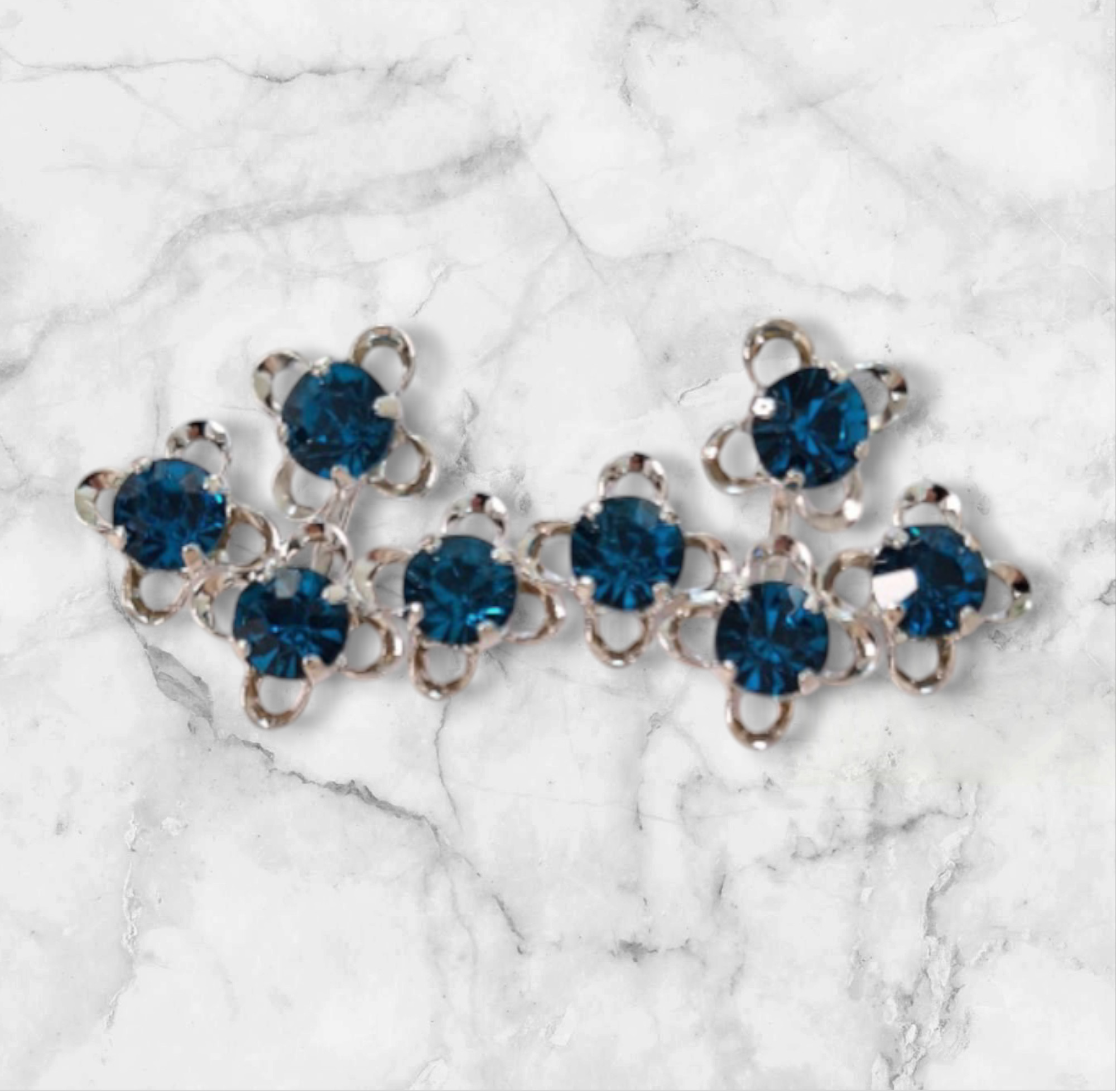 Brinco 4 rosas com pedras na cor azul folheado a prata 925