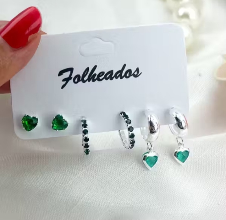 Prepare-se para brilhar com o nosso Brinco Trio Ponto de Luz Coração, Argola Cravejado e Argolinha Coração, folheado a vinte milésimos prata 925 e dupla camada de verniz diamond.