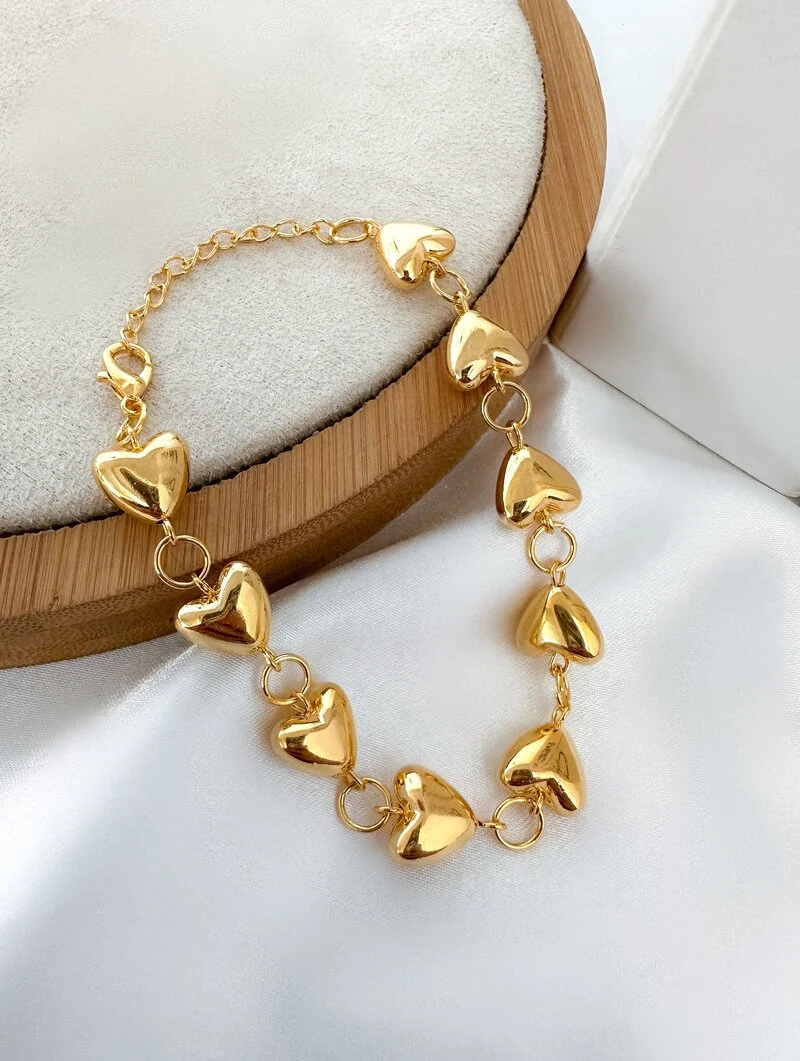 Pulseira Folheada Ouro 18k Corações